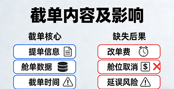 “截单时间快到了,补料赶紧发过来!”——做美国海运的卖家,对货代或船公司的这句催促一定不陌生。“截单”听起来像个技术术语,但它的影响非常实际:一旦错过,轻则产生几百上千的改单费,重则可能导致整柜货物无法上船。今天咱们就彻底搞懂美线海运里这几个关键的“截止日期”,避免因为信息差而花冤枉钱。